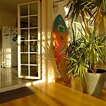 تشتمل بعض الغرف في بيت الشباب Freesurfcamp & على الشرفة ومنطقة الجلوس، بالإضافة إلى إطلالات على المسبح.